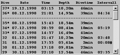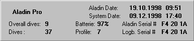 all dives stored in the Aladin (max 37). Dives will be numberd from 1